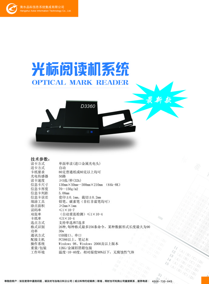 焦作市品科答題卡閱卷機D3360-D售后維修
