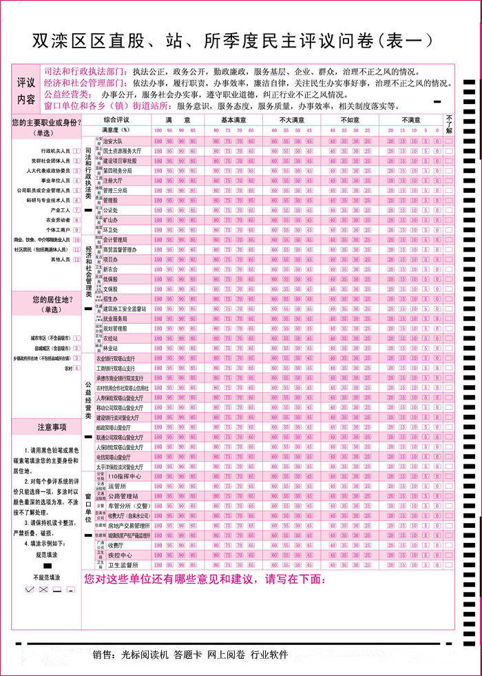 我們的閱讀機采用的雙發一收光柵式光電傳感器,并采用DSP處理器,CPLD和高頻數字電路抗干擾技術,實現了高速采樣控制和智能模糊識別算法,大大改善了涂點識別的準確性和智能化程度,徹底解決了以往閱讀機因電路造成的漏、冒點問題。對于不太規范的,橡皮擦不干凈的涂點都有令人滿意的智能識別效果并增加了系統的穩定性。