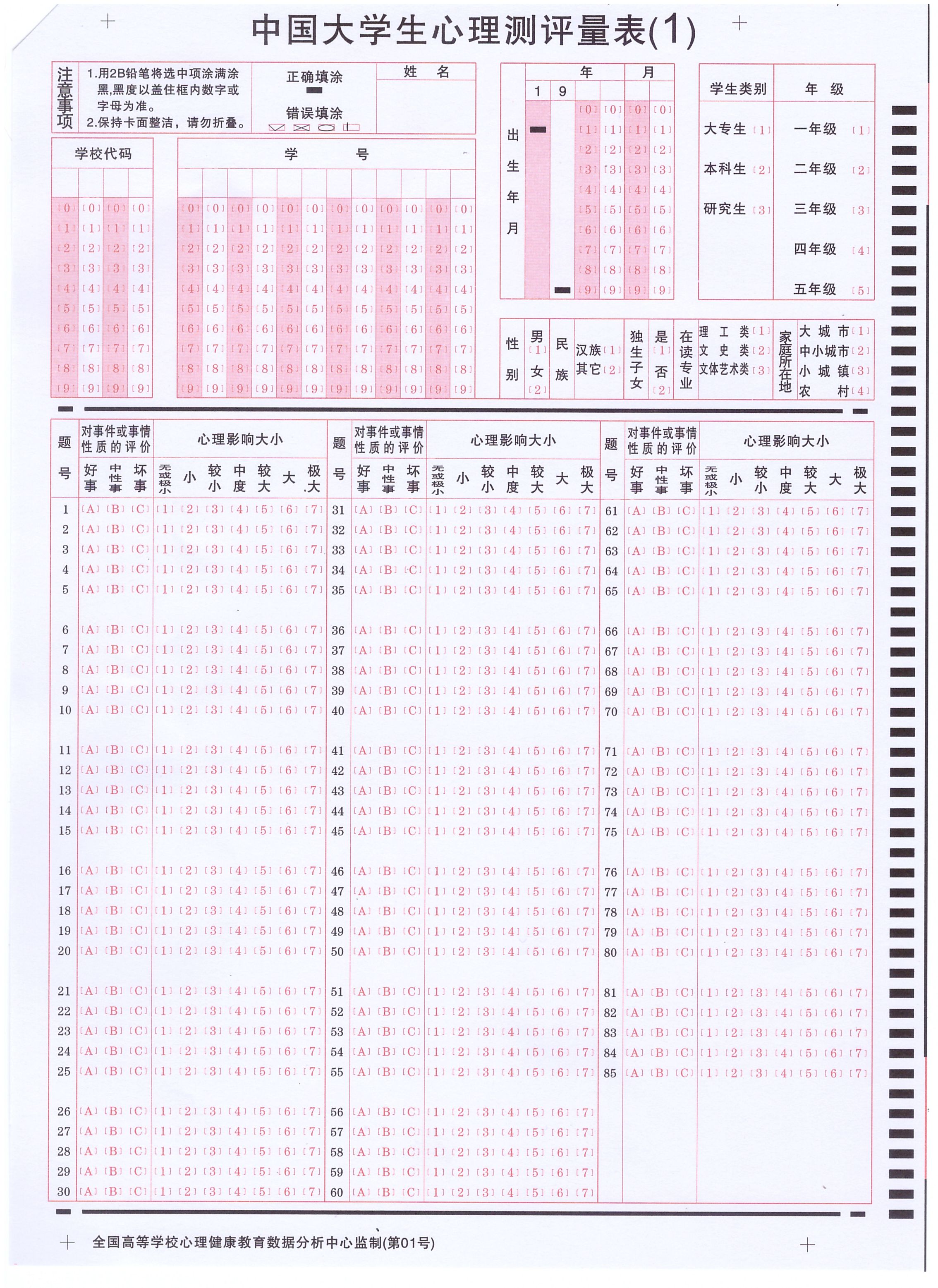產(chǎn)品標(biāo)題:中國大學(xué)生心理測評量表(1)