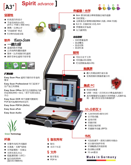 *2、為保證書(shū)刊案卷處理的效率高,要求使用自動(dòng)爆光控制和顏色校正技術(shù),室內(nèi)光線自動(dòng)檢測(cè),在關(guān)閉輔助LED光源的情況下也可以自動(dòng)完成掃描;掃描速度小于0.5秒/A3(彩色600dpi);顏色:36位捕捉,24位輸出。